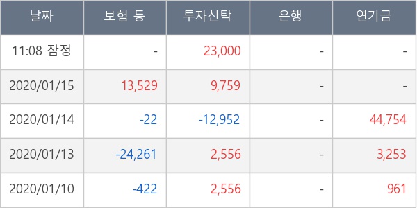 [표] 주요 기관별 순매매량 (단위 주)
