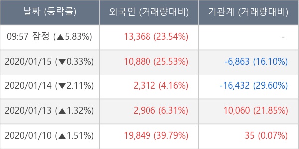 [표] 외국인ㆍ기관 순매매량 (단위 주)