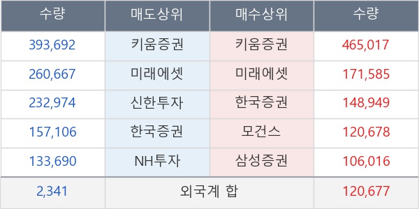 [표] 외국인ㆍ기관 순매매량 (단위 주)