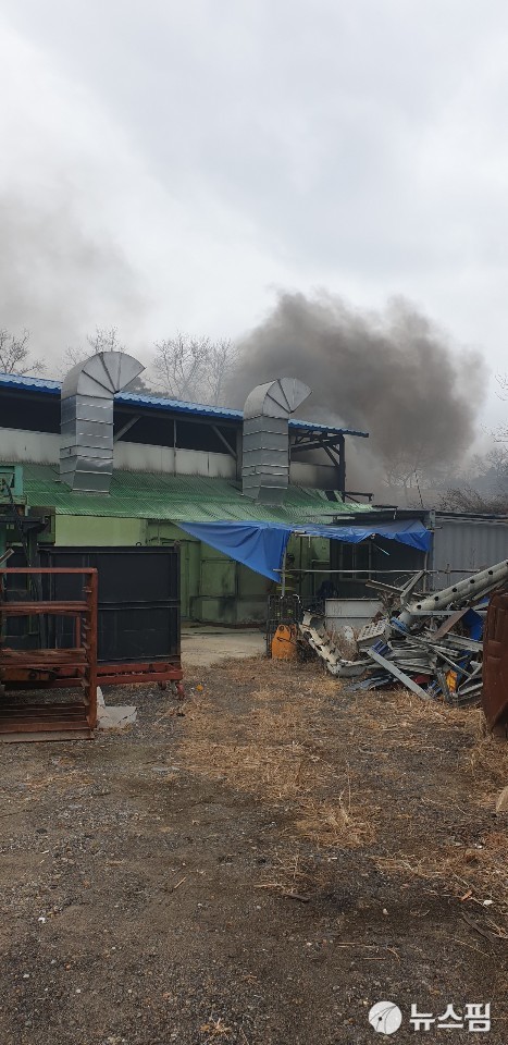 [옥천=뉴스핌] 이주현 기자 = 27일 오전 11시 30분쯤 충북 옥천군 옥천읍의 한 중장비 도색업체에서 불이 났다.