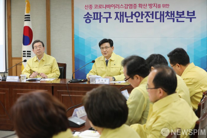 [서울=뉴스핌] 백인혁 기자 = 박성수 송파구청장이 31일 오전 서울 송파구 송파구청서 열린 신종 코로나바이러스 감염병 확산방지 대책회의에서 모두발언을 하고 있다. 2020.01.31 dlsgur9757@newspim.com