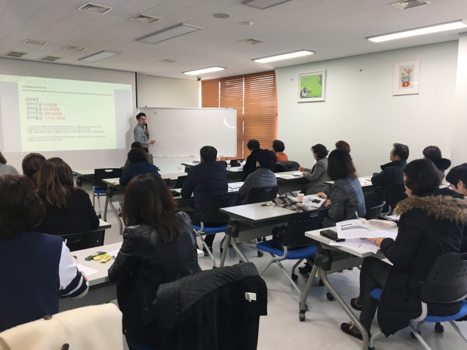 이날 교육은 노무법인 신영(대표 김광훈)을 초청해 보육교직원 채용 시 근로계약서 작성법부터 새로 개정된 여러 노동 법률에 대해 교육을 진행했다.