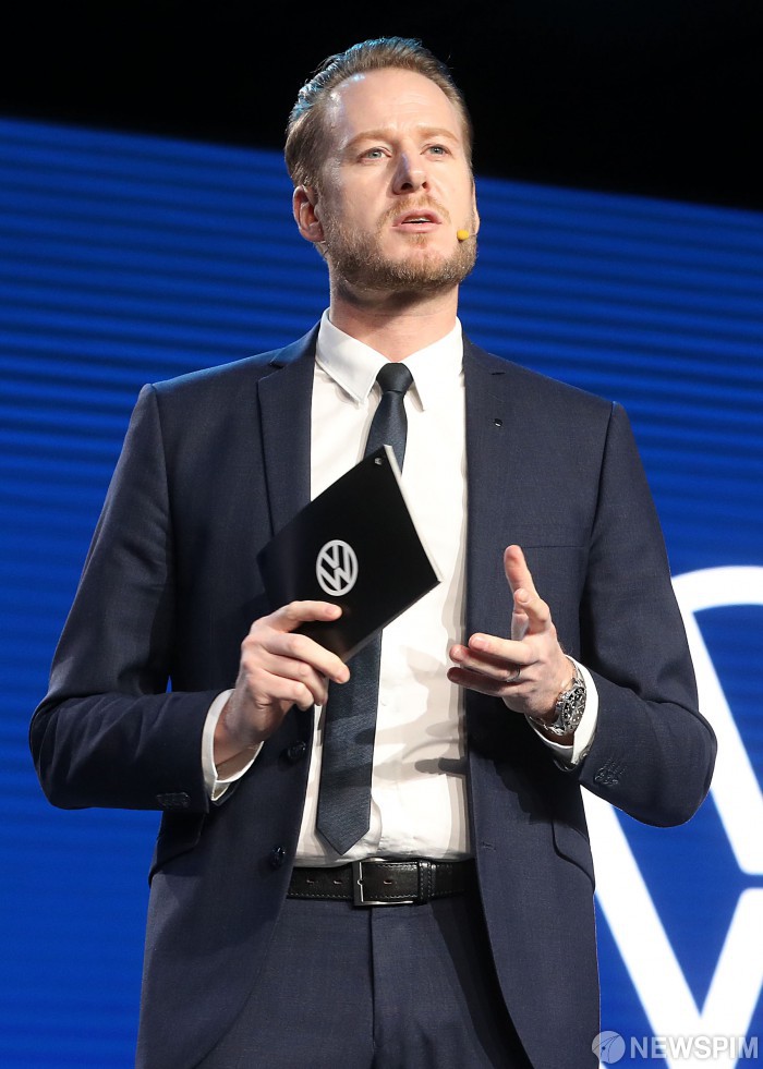 [서울=뉴스핌] 정일구 기자 = 6일 오전 서울 용산구 그랜드 하얏트 호텔에서 열린 폭스바겐 신형 투아렉 신차발표회에서 슈테판 크랍 아우디폭스바겐코리아의 폭스바겐 부문 사장이 차량을 소개하고 있다. 2020.02.06 mironj19@newspim.com