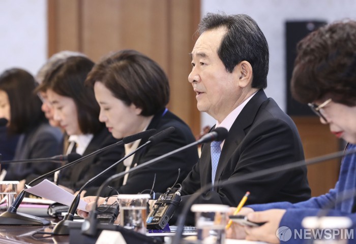 [서울=뉴스핌] 이한결 기자 = 정세균 국무총리가 12일 오전 서울 종로구 정부서울청사에서 열린 ‘제10차 양성평등위원회’에서 모두 발언을 하고 있다. 2020.02.12 alwaysame@newspim.com