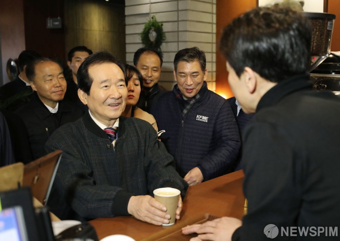[서울=뉴스핌] 정일구 기자 = 정세균 국무총리가 13일 오전 서울 서대문구 신촌 명물거리를 방문해 신종 코로나바이러스 감염증(코로나19) 영향을 받고 있는 소상공인의 애로사항을 청취하고 있다. 2020.02.13 mironj19@newspim.com
