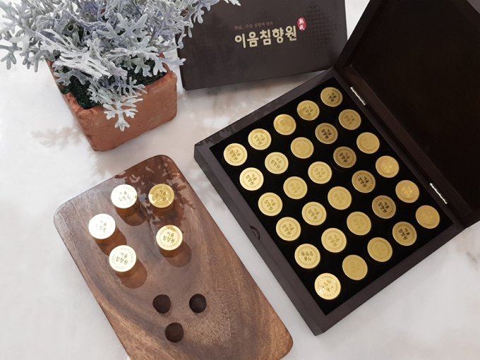이음침향원은 6개월간 3차례 이상 숙성돼 만들어진다. 침향수간목을 분쇄해 3개월간 숙성한 후 특별한 방법으로 순수 원액을 추출하고 추출원액을 다시 2개월간 숙성시킨다.