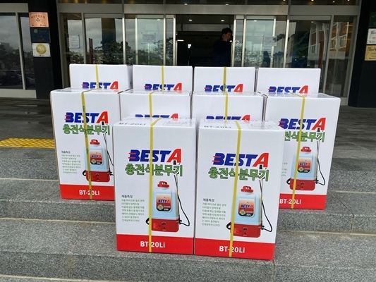 | 베스트통상이 기부한 충전식 분무기[사진=김제시청] 2020.02.27 lbs0964@newspim.com |