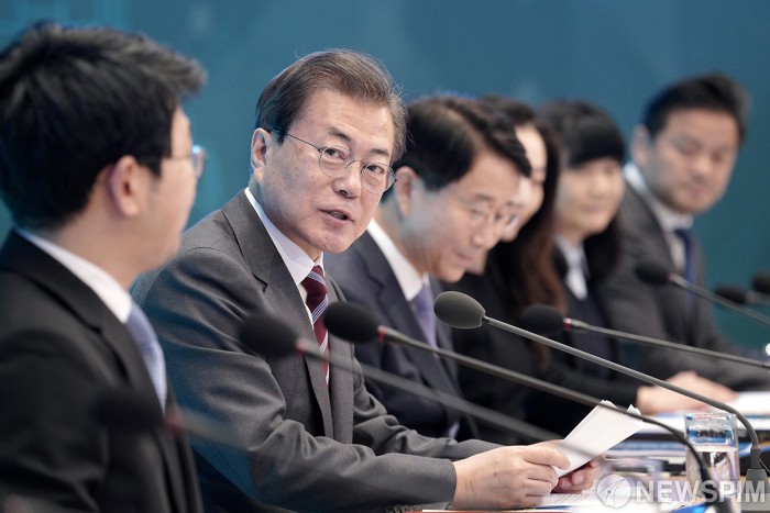 [서울=뉴스핌] 문재인 대통령이 27일 청와대에서 열린 국토교통부와 해양수산부 업무보고에서 발언하고 있다. [사진=청와대 ] 2020.02.27photo@newspim.com