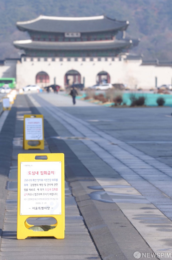 [서울=뉴스핌] 윤창빈 기자 = 서울특별시가 코로나19 확산 방지와 시민건강 보호를 위해 도심내 집회를 금지한 29일 오전 서울 종로구 광화문광장이 한산하다. 2020.02.29 pangbin@newspim.com