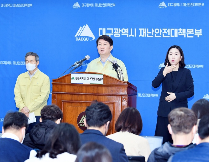 | 권영진 대구시장의 코로나19 브리핑[사진=대구시] |