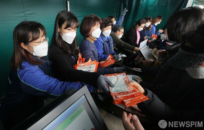[서울=뉴스핌] 윤창빈 기자 = 3일 오후 서울 서초구 하나로마트 양재점에서 시민들이 마스크를 구매하고 있다. 공적 마스크 판매처 중 하나인 농협은 "차질 없는 마스크 공급을 위해 관계 부처와 긴밀하게 공조해 안정적으로 물량을 확보하고, 확보된 물량이 신속하게 공급되도록 노력을 다할 것" 이라고 밝혔다. 2020.03.03 pangbin@newspim.com