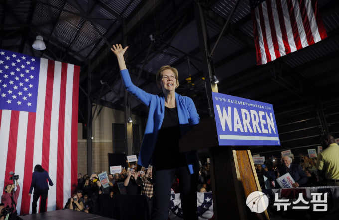 | [디트로이트 로이터=뉴스핌] 이영기 기자 = 3일(현지시간) 미국 미시간주 디트로이트의 선거 유세에서 민주당 경선주자 엘리자베스 워런 상원의원이 손을 흔들고 있다. 2020.03.04 007@newspim.com |