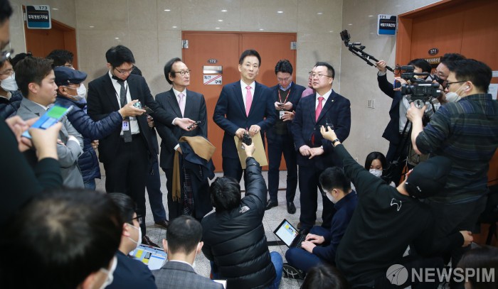 [서울=뉴스핌] 이형석 기자 = 유영하 변호사가 4일 오후 서울 여의도 국회 정론관에서 박근혜 전 대통령의 메시지 전달을 마치고 취재진의 질문에 답하고 있다. 2020.03.04 leehs@newspim.com