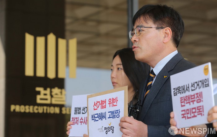 [서울=뉴스핌] 윤창빈 기자 = 김종민 정의당 부대표가 5일 오후 서울 서초구 서울중앙지방검찰청에 박근혜 전 대통령을 선거법 위반으로 고발하기에 앞서 발언하고 있다. 2020.03.05 pangbin@newspim.com