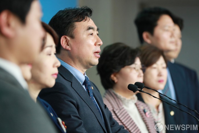 [서울=뉴스핌] 이형석 기자 = 윤관석 더불어민주당 의원이 9일 오후 서울 여의도 국회 정론관에서 인천 남동을 21대 총선 출마 기자회견을 하고 있다. 2020.03.09 leehs@newspim.com