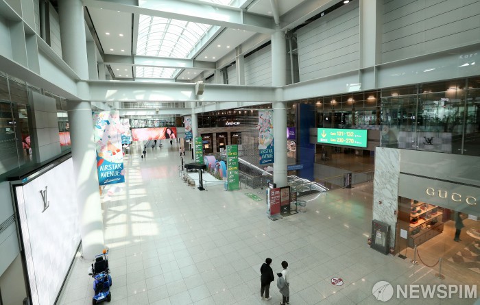[영종도=뉴스핌] 정일구 기자 = 신종 코로나바이러스 감염증(코로나19) 여파로 한국발 입국 제한 조치를 취하고 있는 국가가 늘어나고 있는 12일 오후 인천국제공항 1터미널 출국장 면세구역이 한산한 모습을 보이고 있다. 2020.03.12 mironj19@newspim.com