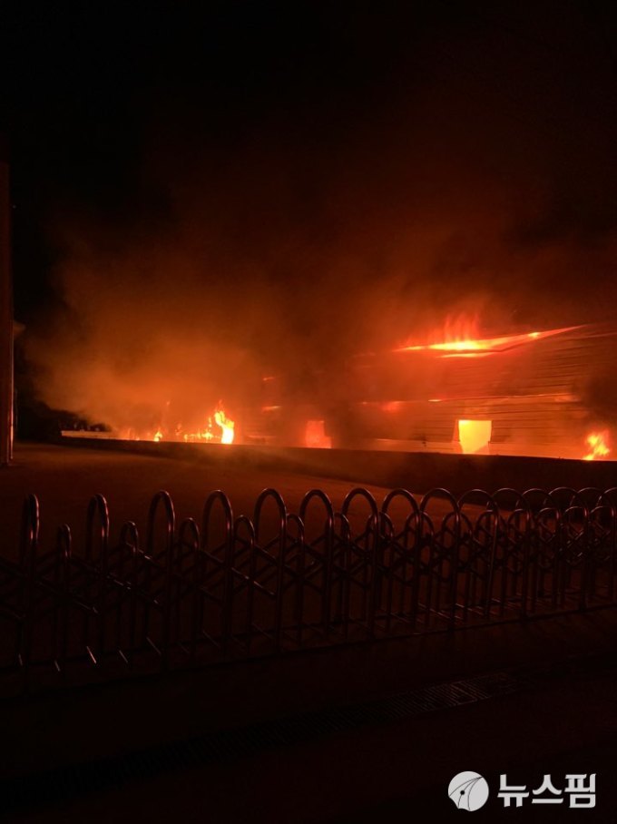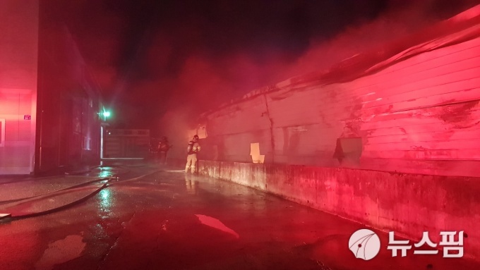[청주=뉴스핌] 이주현 기자 = 14일 오후 7시 43분쯤 충북 청주시 서원구 남이면 척산리의 한 공장 창고에서 불이 났다.
