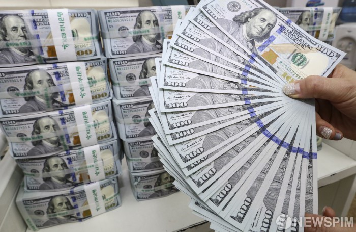 [서울=뉴스핌] 이한결 기자 = 전 세계적 코로나19 확산세로 뉴욕증시가 폭락한 17일 오후 서울 중구 하나은행 위변조대응센터에서 관계자가 달러화를 정리하고 있다. 코스피 지수는 전 거래일 대비 42.42포인트(2.47%) 내린 1,672.44에 마감했고 달러/원 환율은 17.5원 오른 1,243.5원에 거래를 마쳤다. 2020.03.17 alwaysame@newspim.com