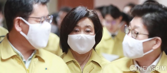 [서울=뉴스핌] 이형석 기자 = 박영선 중소벤처기업부 장관이 21일 오전 서울 종로구 정부서울청사에서 열린 비상국무위원 워크샵에 참석 하고 있다. 2020.03.21 leehs@newspim.com
