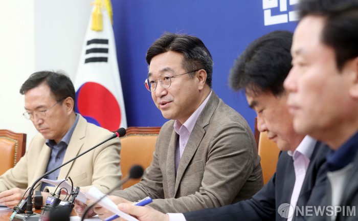 [서울=뉴스핌] 정일구 기자 = 윤호중 더불어민주당 사무총장이 22일 오후 서울 여의도 국회에서 열린 21대 총선 공천 결과 관련 기자간담회에서 발언을 하고 있다. 2020.03.22 mironj19@newspim.com
