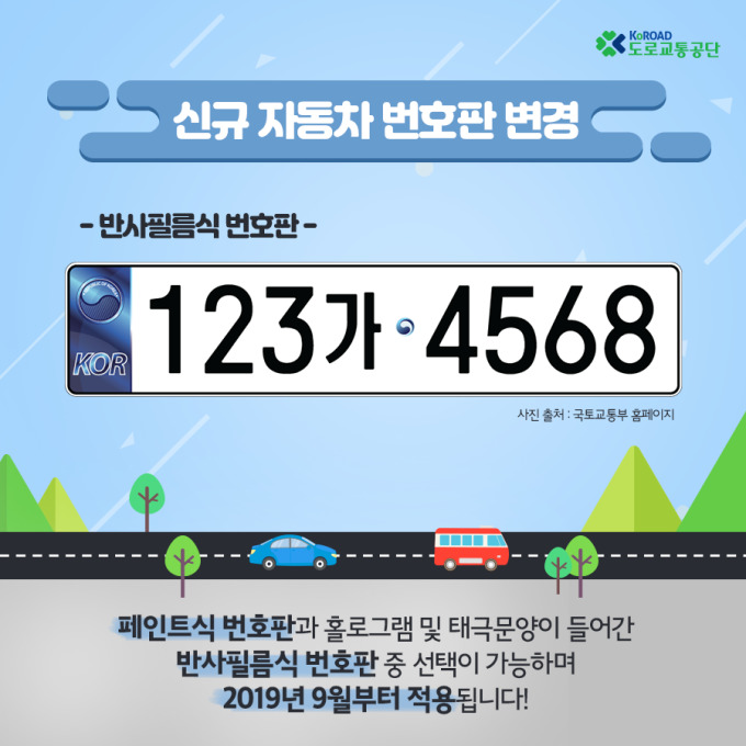 | 반사필름식 차량번호표지판 안내 [사진=국토교통부] |