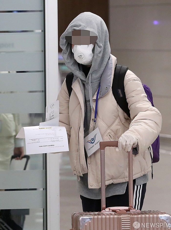 [영종도=뉴스핌] 정일구 기자 = 신종 코로나바이러스 감염증(코로나19) 확산세가 이어지고 있는 25일 오후 인천국제공항 제2터미널에서 프랑스 파리발 여객기를 타고 입국한 승객들이 입국장을 나서고 있다. 2020.03.25 mironj19@newspim.com