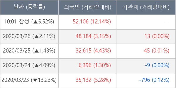 [표] 외국인ㆍ기관 순매매량 (단위 주)