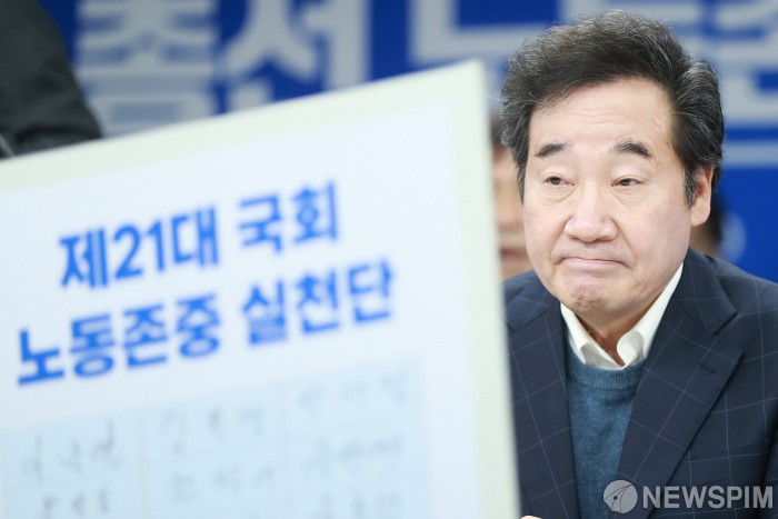 [서울=뉴스핌] 이형석 기자 = 이낙연 더불어민주당 코로나19국난극복위원장이 27일 오전 서울 여의도 당사에서 열린 제21대 총선 미래선대위 노동존중실천단 출정식에 자리 하고 있다. 2020.03.27 leehs@newspim.com
