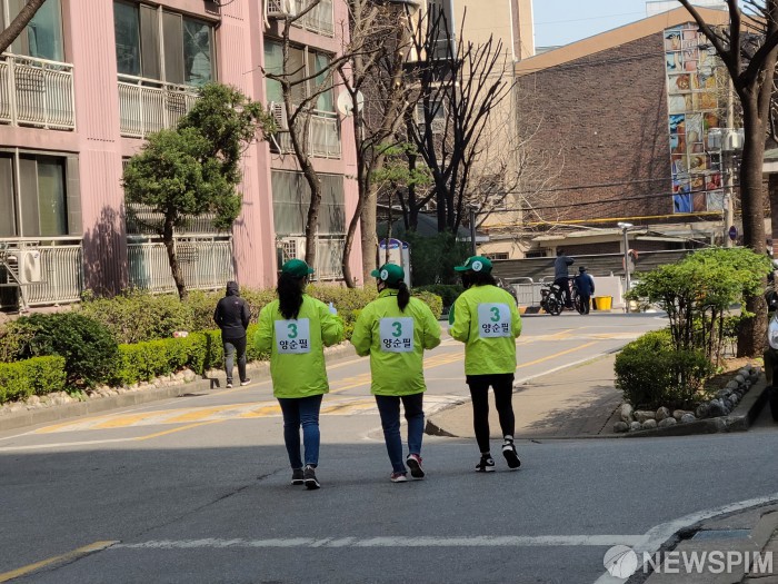 | [광명=뉴스핌] 박승봉 기자 = 2일 제21대 국회의원 공식 선거가 시작됐다. 코로나19 여파로 선거운동원들이 조용히 주택밀집지역에서 선거 운동을 하고 있다. 2020.04.02 1141world@newspim.com |