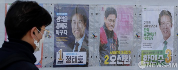 [서울=뉴스핌] 이형석 기자 = 6일 오전 서울 관악구 대학동인근에 4·15 총선 관악구을에 출마하는 후보자들의 선거 벽보가 붙어 있다. 2020.04.06 leehs@newspim.com