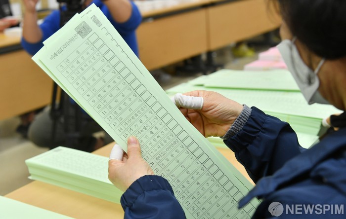 [서울=뉴스핌] 정일구 기자 = 7일 오전 서울 영등포구선거관리위원회에서 선관위 관계자들이 제21대 국회의원 선거 투표용지를 검수하고 있다. 2020.04.07 mironj19@newspim.com
