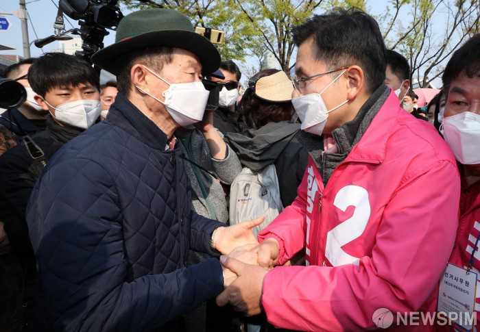 [서울=뉴스핌] 백인혁 기자 = 황교안 미래통합당 종로구 후보가 7일 오후 서울 종로구 동묘시장 앞에서 선거 유세를 마치고 이동하며 유권자들과 대화하고 있다. 2020.04.07 dlsgur9757@newspim.com