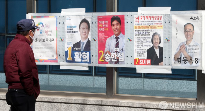 [서울=뉴스핌] 정일구 기자 = 8일 오후 서울 양천구 목동의 한 거리에 양천구갑 국회의원 후보들의 선거 벽보가 게시돼 있다. 2020.04.08 mironj19@newspim.com