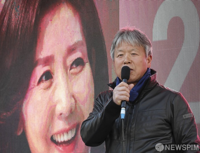 [서울=뉴스핌] 이한결 기자 = 산악인 엄홍길 대장이 8일 오후 서울 동작구 숭실대입구역 인근 사거리에서 제21대 국회의원선거(4.15 총선) 동작을 후보로 출마한 나경원 미래통합당 후보의 유세를 지원하고 있다. 2020.04.08 alwaysame@newspim.com