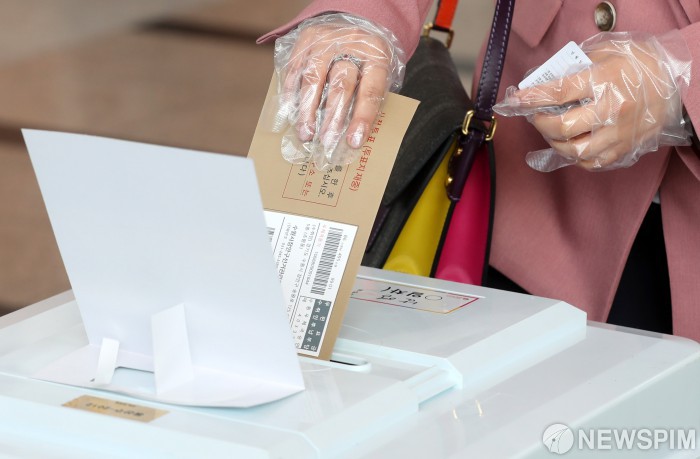 [서울=뉴스핌] 정일구 기자 = 제21대 국회의원 선거 사전투표가 시작된 10일 오전 서울 용산구 서울역에 마련된 남영동 사전투표소에서 시민들이 투표에 참여하고 있다. 2020.04.10 mironj19@newspim.com