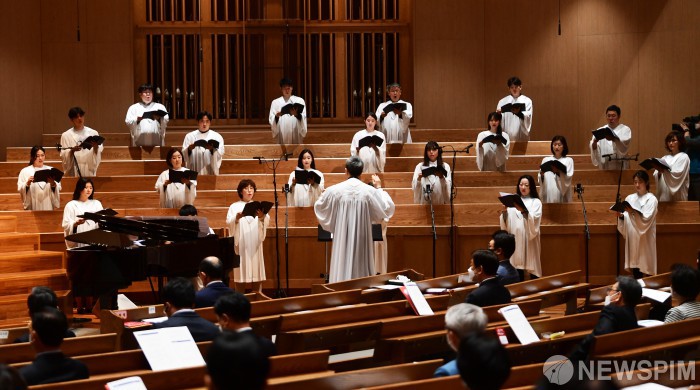 [서울=뉴스핌] 사진공동취재단 = 2020 부활절 연합예배가 12일 오후 서울 종로구 새문안교회에서 70개 교단 주최, 2020 한국교회 부활절 연합예배 준비위원회 주관으로 열리고 있다. 2020.04.12 photo@newspim.com