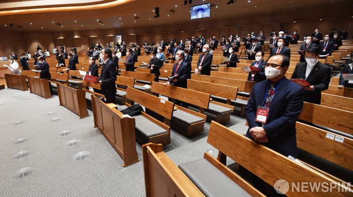 [서울=뉴스핌] 사진공동취재단 = 2020 부활절 연합예배가 12일 오후 서울 종로구 새문안교회에서 70개 교단 주최, 2020 한국교회 부활절 연합예배 준비위원회 주관으로 열리고 있다. 2020.04.12 photo@newspim.com