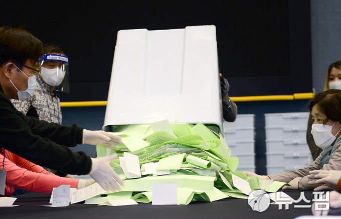 | [성남=뉴스핌] 정종일 기자 = 제21대 국회의원선거가 치뤄진 15일 오후 경기도 성남시 성남종합스포츠센터에 차려진 중원구 지역 개표소에서 개봉된 투표함속의 투표용지들이 쏟아져 나오고 있다. 2020.04.15 observer0021@newspim.com |