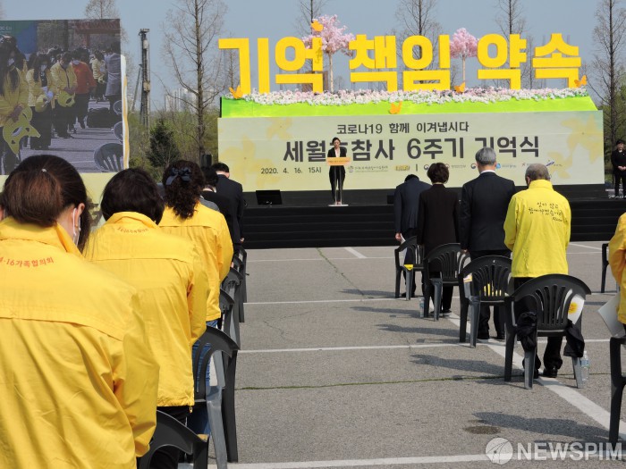 [안산=뉴스핌] 박승봉 기자 = 16일 오후 3시 경기 안산시 화랑유원지에서 '세월호참사 6주기 기억식'이 개최됐다. 세월호 유가족들이 묵상을 하고 있다. 2020.04.16 1141world@newspim.com