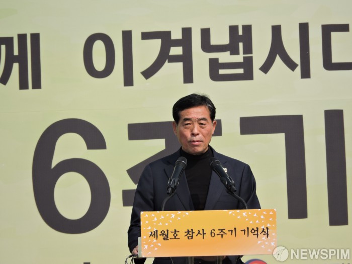 [안산=뉴스핌] 박승봉 기자 = 16일 오후 3시 경기 안산시 화랑유원지에서 '세월호참사 6주기 기억식'이 개최됐다. 윤화섭 안산시장은 추도사를 통해 "참담한 희생을 기억해 교훈으로 삼아 시민이 서로 화합하고 미래를 향해 나아가는 안산시를 만들겠다"고 말했다.2020.04.16 1141world@newspim.com