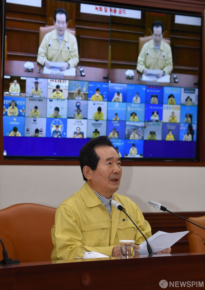 [서울=뉴스핌] 백인혁 기자 = 정세균 국무총리가 19일 오후 서울 종로구 정부서울청사에서 열린 신종 코로나 바이러스 감염증(코로나19) 대응 중앙재난대책안전본부 회의를 주재하며 발언하고 있다. 2020.04.19 dlsgur9757@newspim.com