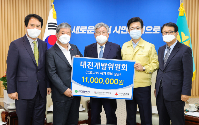 [대전=뉴스핌] 오영균 기자 = 대전광역시 개발위원회가 23일 코로나19로 어려움을 겪고 있는 취약계층을 돕는데 써달라며 성금 1100만원을 대전시에 기탁했다.