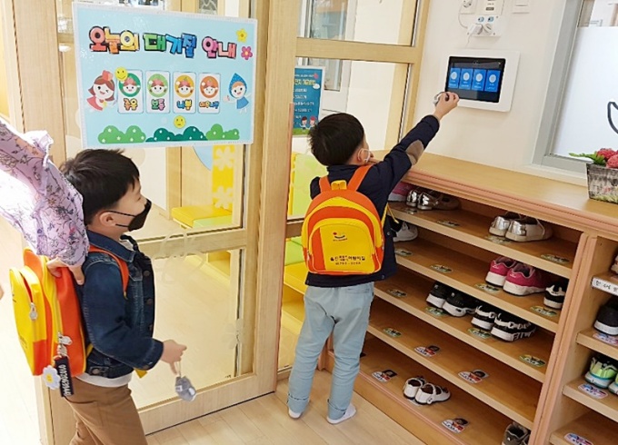 | 경북 울진군이 지역 내 어린이집 아이들의 안전한 등.하원 체계구축을 위해 설치한 전자출결시스템.[사진=뉴스핌] 2020.04.29 nulcheon@newspim.com |