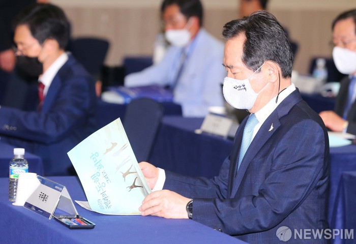 [서울=뉴스핌] 윤창빈 기자 = 정세균 국무총리가 8일 오후 서울 서초구 더케이호텔에서 열린 문재인정부 3주년 국정토론회에서 ‘코로나19, 국민과의 동행 그리고 희망‘을 주제로 특별강연을 하기 전 자료를 살펴보고 있다. 2020.05.08 pangbin@newspim.com
