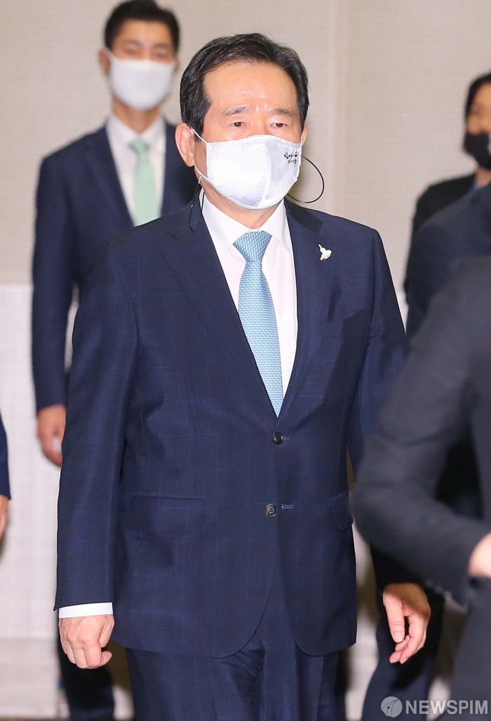 [서울=뉴스핌] 윤창빈 기자 = 정세균 국무총리가 8일 오후 서울 서초구 더케이호텔에서 열린 문재인정부 3주년 국정토론회에서 ‘코로나19, 국민과의 동행 그리고 희망‘을 주제로 특별강연을 하기위해 참석하고 있다. 2020.05.08 pangbin@newspim.com