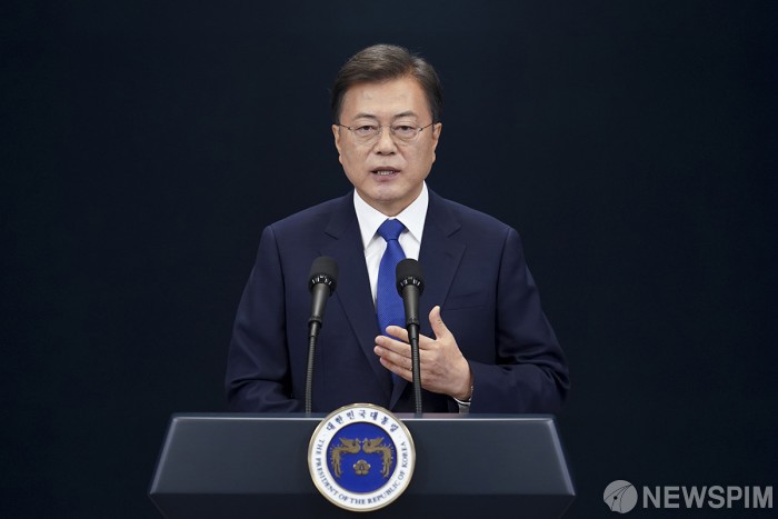 [서울=뉴스핌] 문재인 대통령이 10일 오전 청와대에서 대통령 취임 3주년 특별연설을 하고 있다. [사진=청와대] 2020.05.10 photo@newspim.com