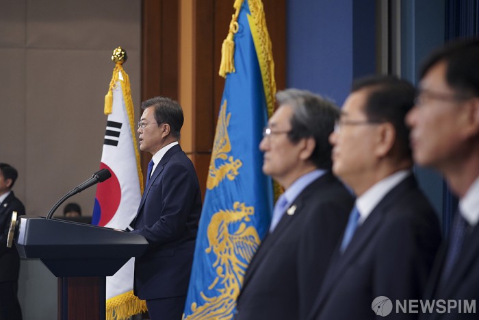 [서울=뉴스핌] 문재인 대통령이 10일 오전 청와대에서 대통령 취임 3주년 특별연설을 하고 있다. [사진=청와대] 2020.05.10 photo@newspim.com