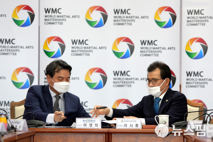 [청주=뉴스핌] 이주현 기자 = 한국도핑방지위원회와 세계무예마스터십위원회가 14일 도핑방지 활동 지원 등 내용이 담긴 업무협약을 맺었다.