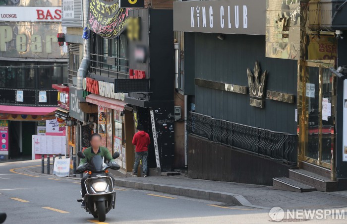 | [서울=뉴스핌] 윤창빈 기자 = 12일 오전 코로나19 확진자가 발생한 서울 용산구 이태원에 있는 클럽거리가 한산하다. 중앙방역대책본부에 따르면 지난 11일까지 확인된 이태원 클럽 확진자는 최소 94명이다. 2020.05.12 pangbin@newspim.com |
