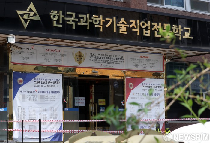 [서울=뉴스핌] 정일구 기자 = 20일 오전 재학생 중 신종 코로나바이러스 감염증(코로나19) 확진자가 나온 서울 영등포구 한국과학기술직업전문학교 입구에 임시 폐쇄 안내문이 붙어있다. 2020.05.20 mironj19@newspim.com